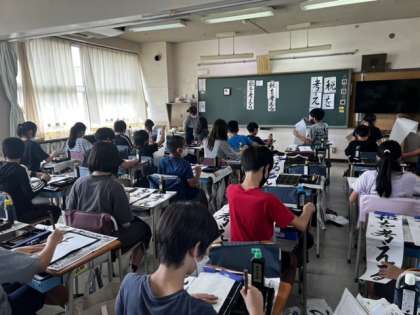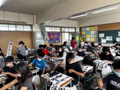 税金の使われ方について学習を行いましたが、5・6年生で書道の作品展に
