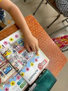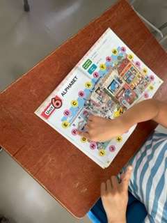 示されたアルファベットをいち早く見つけて指で指し示すポインティングゲームでは盛り上がって楽しんでいましたよ!