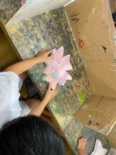 なんと、山崎小80周年をお祝いするために、文字を形どって作っている子もいました!