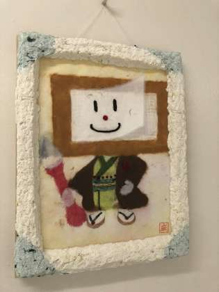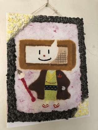 PTA紙漉き同好会の皆さんによる「わしのすけ」の和紙造形作品。