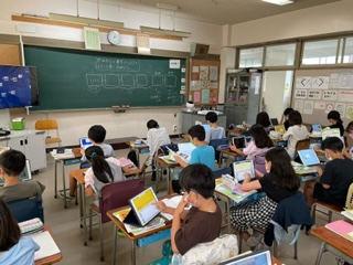 世田谷区の農家の工夫について、ロイロノートを活用して報告書にまとめています。