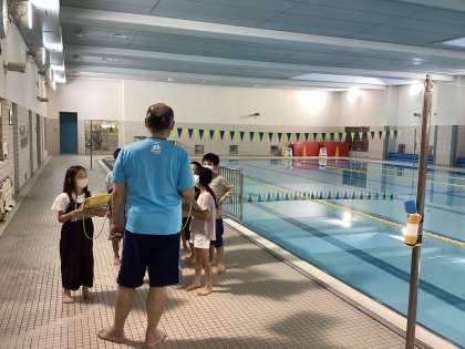 梅丘中学校のプールでは、水を温める大きな機会に驚き、