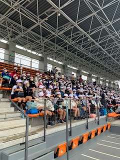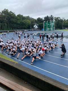 残念ながらグラウンドの水捌けが出来ないほど断続的に小雨が降っているため、競技会は中止となりましたが、せっかく来たので本格的なトラックを走ります。