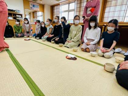 クラブ活動で、茶道体験をしました。