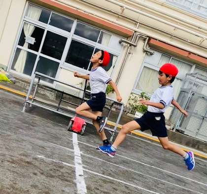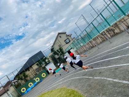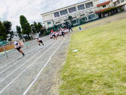 80m走のスタートの確認とカーブの攻略方法を確認しました。お互いに競い合い、認め合う姿がかっこよかったです。