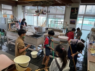 先日の紙漉きの後には、友達と協力し合って後片付けをする姿が。