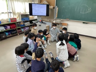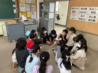 スポーツ祭り「秋」に向けて、3、4年生が一緒に集まってリレーのオリエンテーションをしました。
