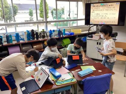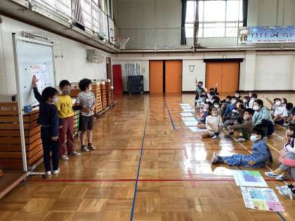 町たんけんでインタビューしてきたお店や施設のいいところを学年で交流しました。
