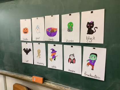 外国語活動でハロウィンに関係する単語を覚えました。