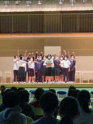 世田谷中学校の体育館をお借りして、吹奏楽部の演奏と演劇部のお芝居を見せていただきました。