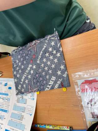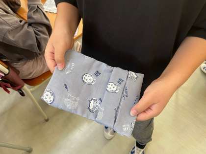 5年1組、これまで学習してきた玉結び、玉どめ、なみ縫い、返し縫いなどを駆使してティッシュケースづくりに取り掛かりました。