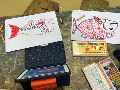 1組と2組は、それぞれの図工の授業で、