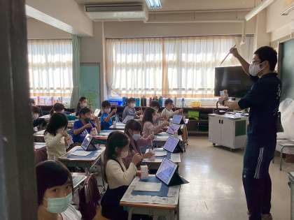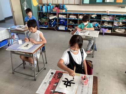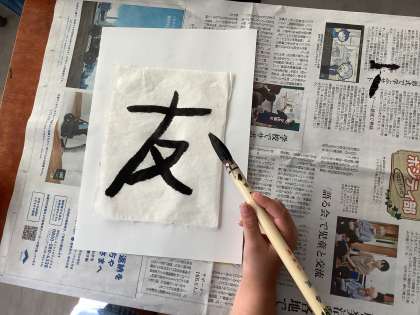 筆を使い、自分が選んだ一文字を和紙に書きました。