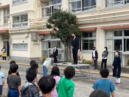 5年代表としての校長先生への朝の挨拶、立派でした!