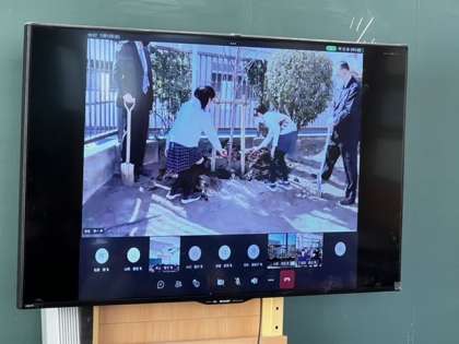 6年生の周年委員の子どもたちが、代表で校庭に出て、