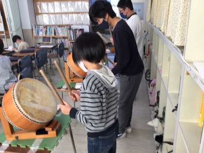 山崎小は、「あわてんぼうのサンタクロース」の2番を担当し、「ドンドンドン」のところを太鼓で演奏しました。