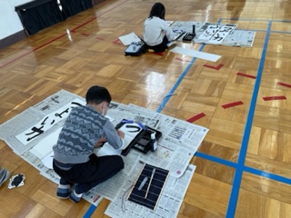 来週の書き初め展に向けて、3年生みんなで「つよい力」の書き初めをしました!