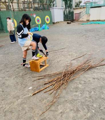慣れないノコギリ作業でしたが、協力して頑張りました。