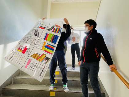 拡大印刷でつくった本棚を塗って、教室にはります。