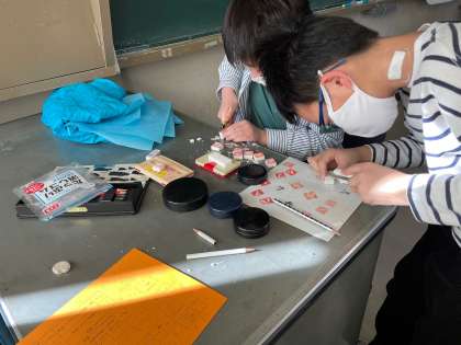 2枚目は、キャラクターがもつ消しゴムはんこ制作。