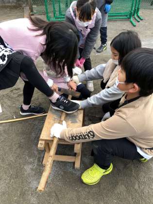 新しい年を迎え、寒さも厳しい季節になって来た今ごろが、和紙を漉くシーズンです。山崎の4年生も紙漉き体験学習の始まりです。生きた生木を切る初めての体験は驚きの連続だったようです。