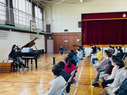 ピアノが好きな得意な子達でコンサートを企画、学年のみんなに披露してくれました。