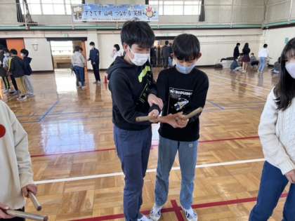 山崎太鼓の3月のバトンタッチに向け、5年生に
