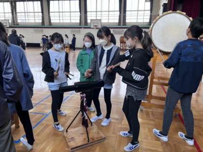 実際に太鼓を用いながら、叩き方やリズムを
