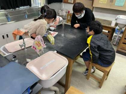 食塩の溶ける様子を観察しました。