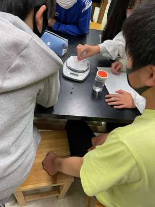 電子てんびんなどを使って実験です。