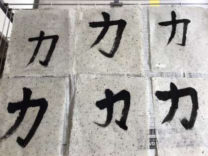 漉いた和紙は、一人一枚だけです。集中して丁寧に、力強く「力」と書きました。和紙がとてもいい感じに調和し、それぞれ素敵な書ができました。