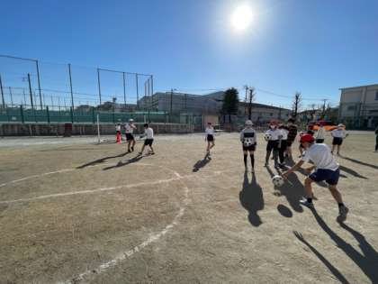 5-1のサッカー、リーダー中心に進め、パス練習、シュート練習を楽しく安全に終えることができました。