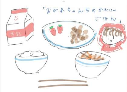 ちなみに、このこんだてのテーマは「おばあちゃん家の可愛いご飯」です。皆に残さず食べてもらえると嬉しいです。」