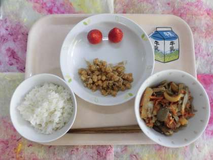 今日は保健給食委員会が考えた「委員会こんだて」です。