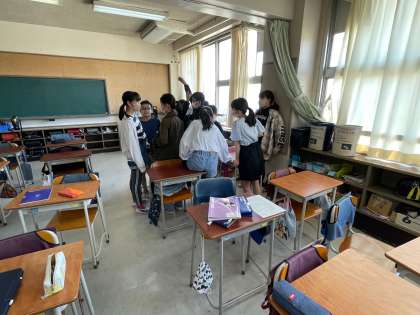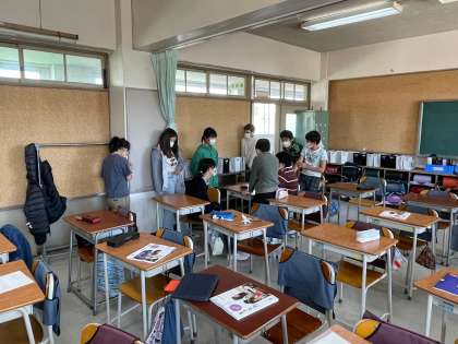 6-1、当番グループごとに集まって、役割分担を打ち合わせしています。