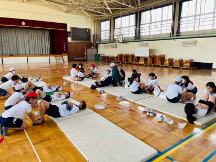 6-1、上体おこし、反復横跳び、立ち幅跳びなど、コツをおさえて練習しました。