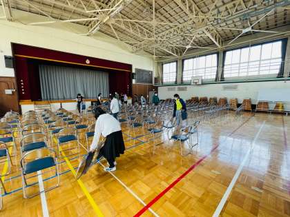 本日は保護者会。会場準備を6年生が担当しました。今回は6-1が順番でした。協力してよく頑張っていました!