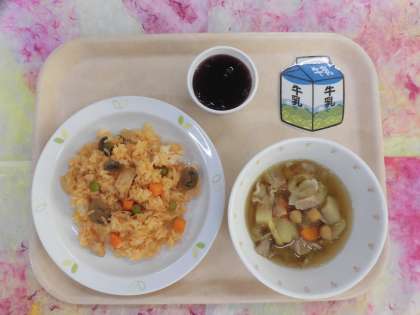 今日は初夏を思わせるような暑さです。そんな暑い日にぴったりのぶどうゼリーが付いています。暑さに負けないよう、しっかり食べましょう。