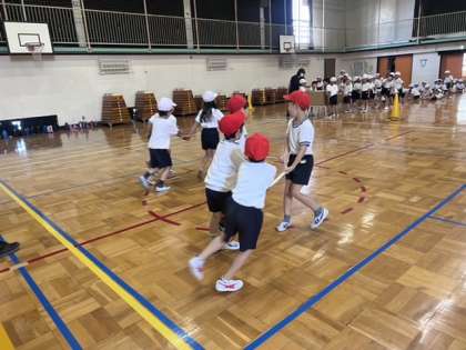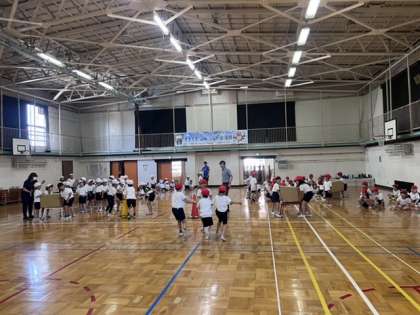 今日は1、2年生合同で、スポーツ祭りの団体競技の