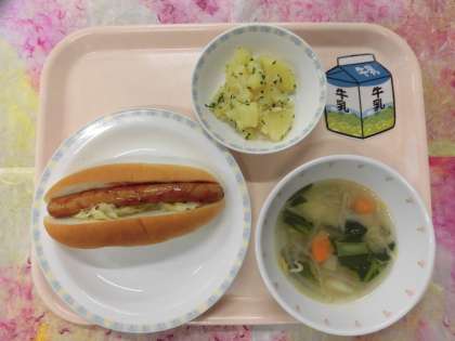 今日の小松菜は、東京都八王子市内の農家さんが作った「東京の野菜」です。いつもの小松菜と違うところはあるでしょうか。しっかり食べて、雨にも負けず元気に過ごしましょう。