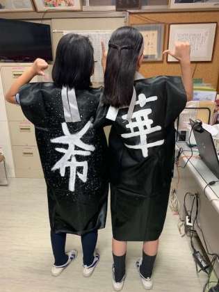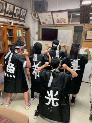 ソーラン節のはっぴは、5年生になると背中に好きな文字を背負います。そんな5年生は