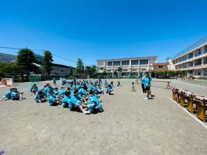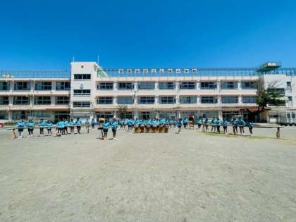 法被を着て、雪駄も履いて、校庭で演奏しました。
