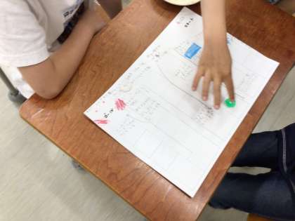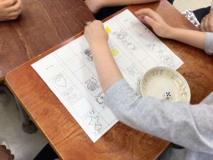 総合的な学習の時間にすごろくを作りました。それぞれが作ったすごろくで、グループごとに遊びました。友達の作ったすごろくはとても面白くて、大笑いしながらみんなで楽しく遊ぶことができました。