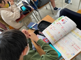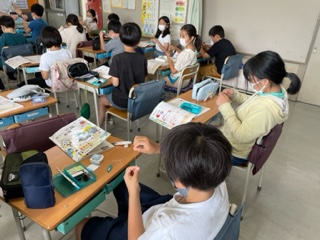 針の糸通しと玉結び・玉留めの仕方を教わり、練習しているところです。