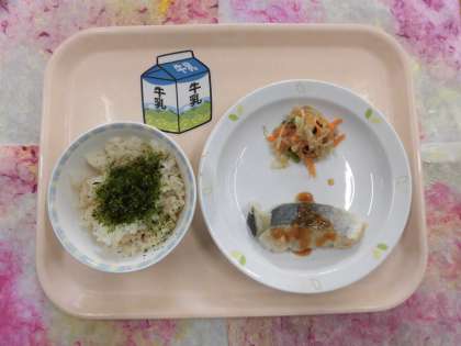 今日は梅の日です。給食では魚のソースに梅肉を使っています。酸っぱい味の苦手な子がいるかもしれませんが、疲れたときや食欲がないときに食べてほしい食材です。暑さに慣れるよう、しっかり食べましょう。