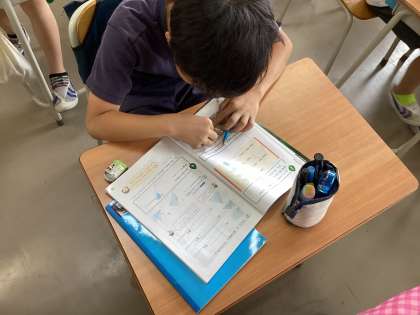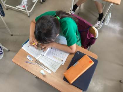 体をねじらせ、腕をねじらせ、教科書の向きや分度器の向きを変えて、