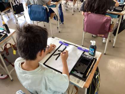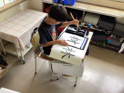 落ち着いた態度で、ゆっくり丁寧に、集中して書いていました。