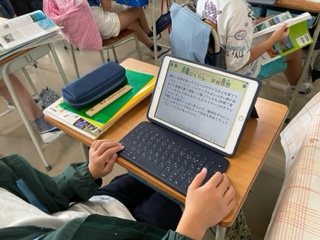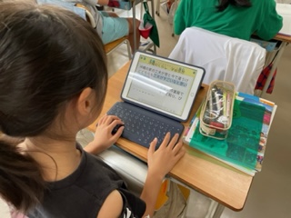 暖かい土地ならではの工夫を見つけ、ロイロノートに学習感想を入力しています。