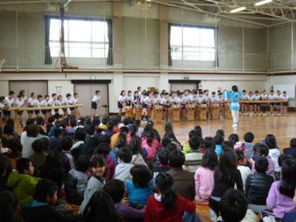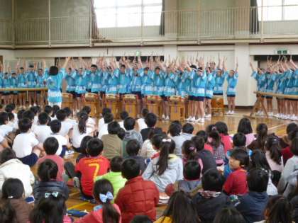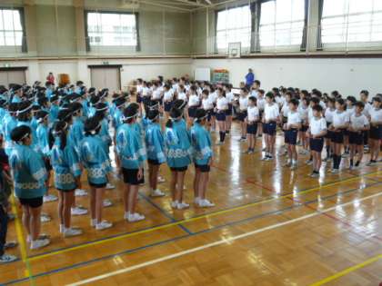 2学期の後半から取り組んできた5年生と6年生。総合的な学習の時間「ドリームタイム」や休み時間を利用して、20代目の6年生が21代目となる5年生に、心と技を丁寧に伝えてきました。5年生も6年生の期待に応えようと一生懸命に練習に取り組み、今日の堂々とした演奏発表となりました。