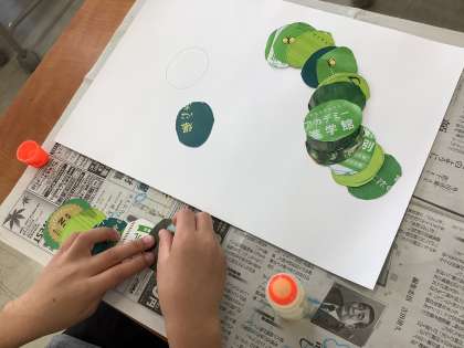 次に、緑の丸を少し重ねながらどんどん貼って、